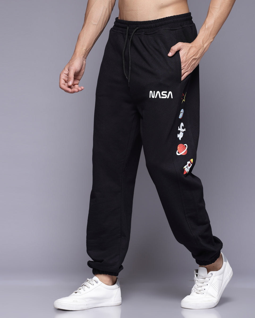 Exclusive NASA Print: Featuring a unique NASA print, these joggers pay homage to space exploration and adventure. The design is bold yet understated, making it easy to pair with various tops for a stylish look.